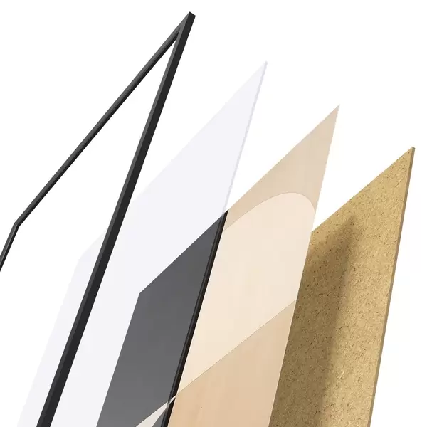 Plakāts sastāv no rāmja, pleksstikla, iespiestā attēla un skaidu plātnes pamatnes. Plakātu var uzreiz piekarināt pie sienas, pateicoties aizmugurē esošajiem stiprinājumiem.