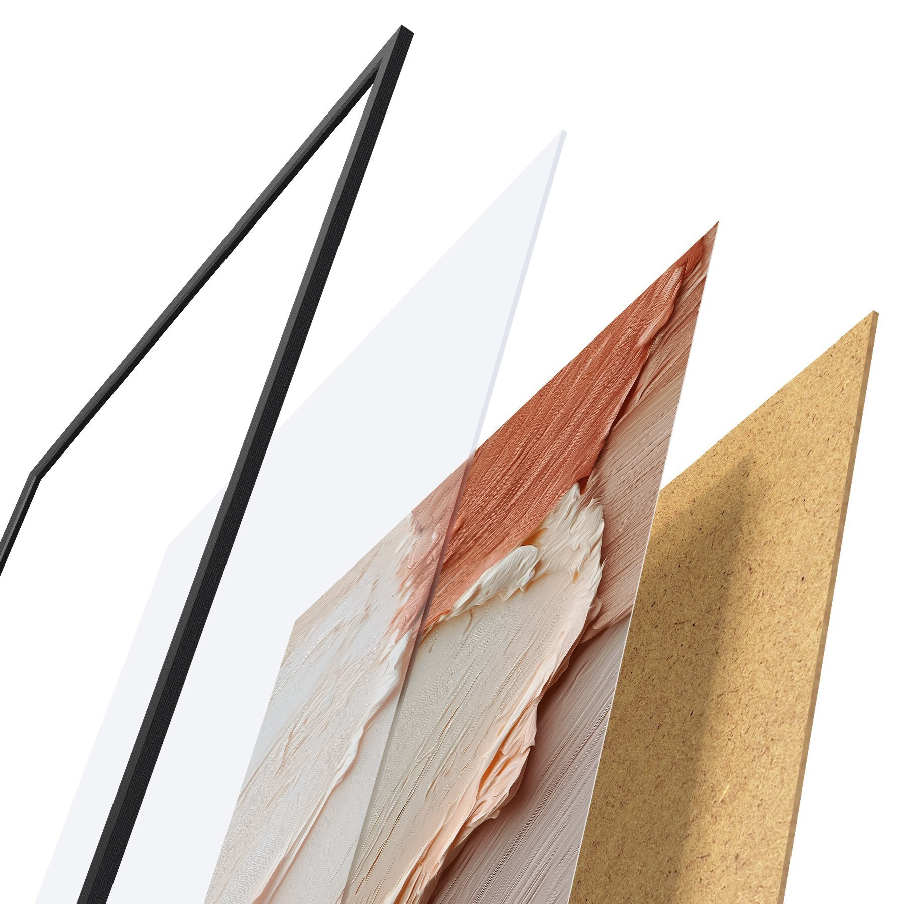 Plakāts sastāv no rāmja, pleksstikla, iespiestā attēla un skaidu plātnes pamatnes. Plakātu var uzreiz piekarināt pie sienas, pateicoties aizmugurē esošajiem stiprinājumiem.