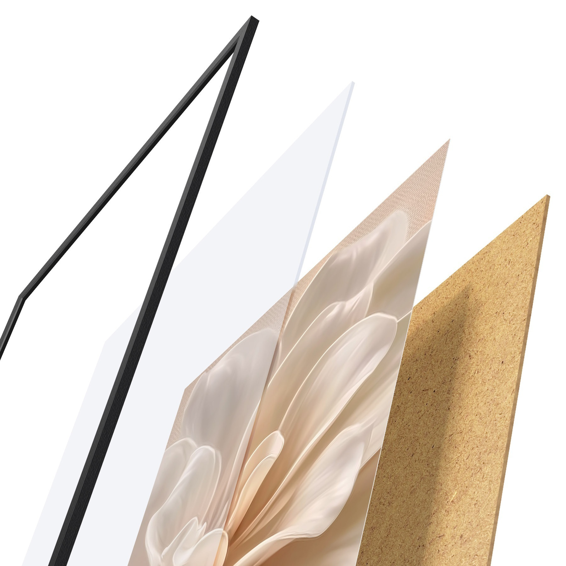 Plakāts sastāv no rāmja, pleksstikla, iespiestā attēla un skaidu plātnes pamatnes. Plakātu var uzreiz piekarināt pie sienas, pateicoties aizmugurē esošajiem stiprinājumiem.