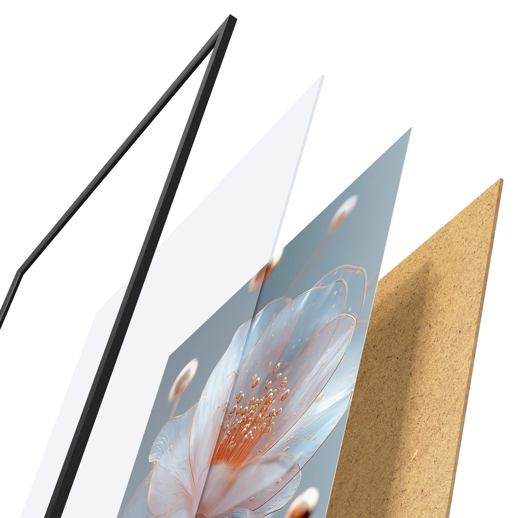 Plakāts sastāv no rāmja, pleksstikla, iespiestā attēla un skaidu plātnes pamatnes. Plakātu var uzreiz piekarināt pie sienas, pateicoties aizmugurē esošajiem stiprinājumiem.