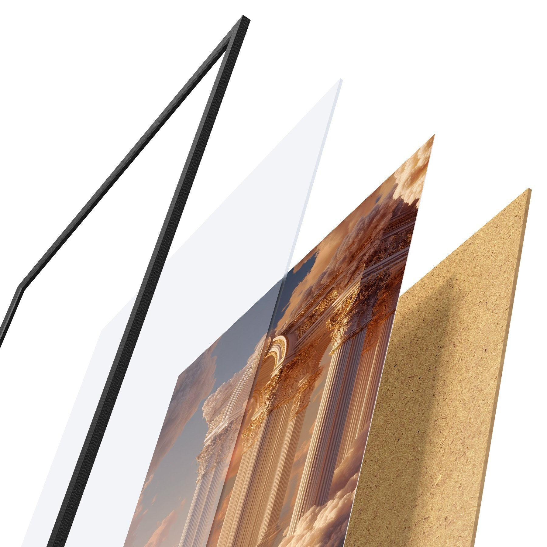 Plakāts sastāv no rāmja, pleksstikla, iespiestā attēla un skaidu plātnes pamatnes. Plakātu var uzreiz piekarināt pie sienas, pateicoties aizmugurē esošajiem stiprinājumiem.