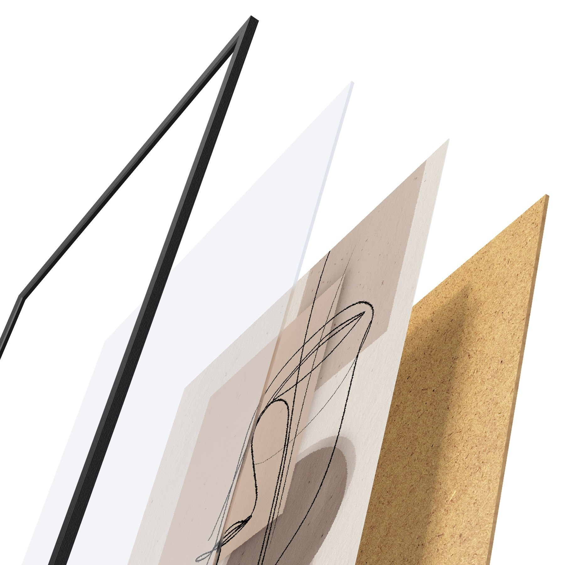 Plakāts sastāv no rāmja, pleksstikla, iespiestā attēla un skaidu plātnes pamatnes. Plakātu var uzreiz piekarināt pie sienas, pateicoties aizmugurē esošajiem stiprinājumiem.