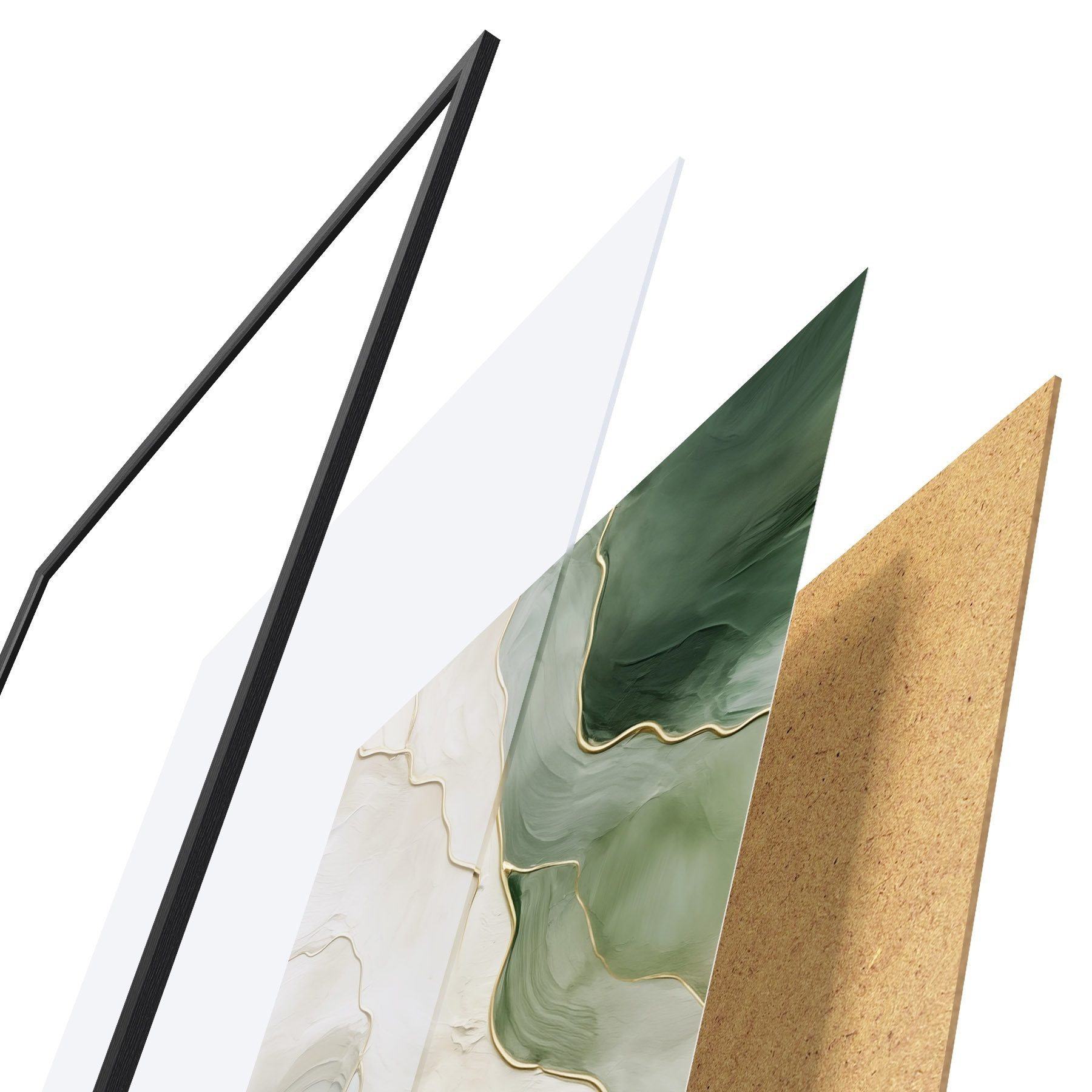 Plakāts sastāv no rāmja, pleksstikla, iespiestā attēla un skaidu plātnes pamatnes. Plakātu var uzreiz piekarināt pie sienas, pateicoties aizmugurē esošajiem stiprinājumiem.