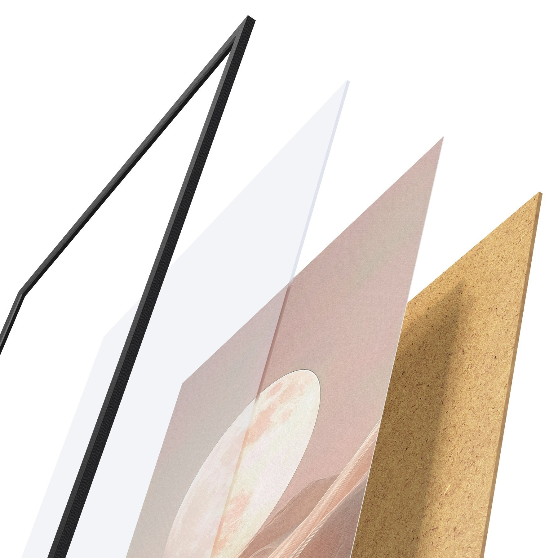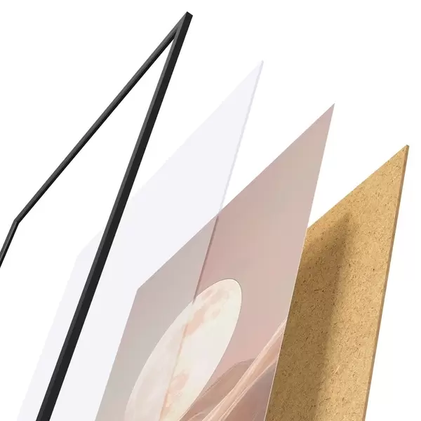 Plakāts sastāv no rāmja, pleksstikla, iespiestā attēla un skaidu plātnes pamatnes. Plakātu var uzreiz piekarināt pie sienas, pateicoties aizmugurē esošajiem stiprinājumiem.