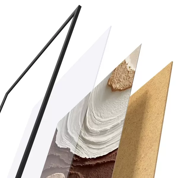 Plakāts sastāv no rāmja, pleksstikla, iespiestā attēla un skaidu plātnes pamatnes. Plakātu var uzreiz piekarināt pie sienas, pateicoties aizmugurē esošajiem stiprinājumiem.