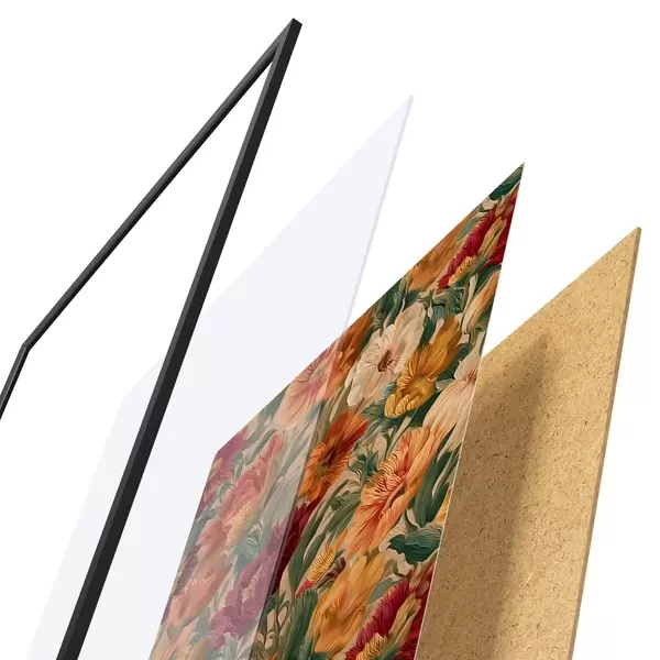 Plakāts sastāv no rāmja, pleksstikla, iespiestā attēla un skaidu plātnes pamatnes. Plakātu var uzreiz piekarināt pie sienas, pateicoties aizmugurē esošajiem stiprinājumiem.