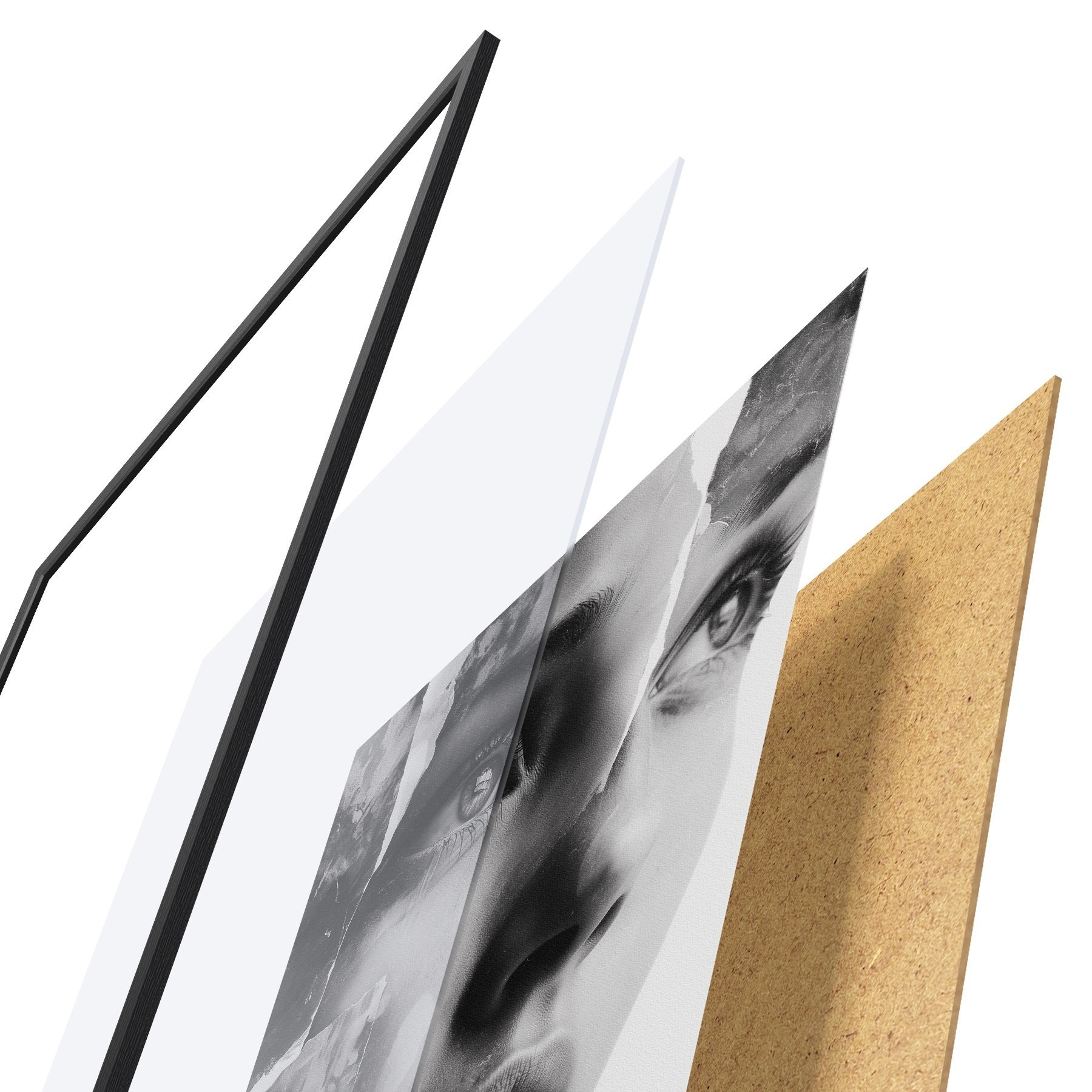 Plakāts sastāv no rāmja, pleksstikla, iespiestā attēla un skaidu plātnes pamatnes. Plakātu var uzreiz piekarināt pie sienas, pateicoties aizmugurē esošajiem stiprinājumiem.