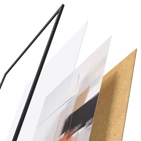 Plakāts sastāv no rāmja, pleksstikla, iespiestā attēla un skaidu plātnes pamatnes. Plakātu var uzreiz piekarināt pie sienas, pateicoties aizmugurē esošajiem stiprinājumiem.