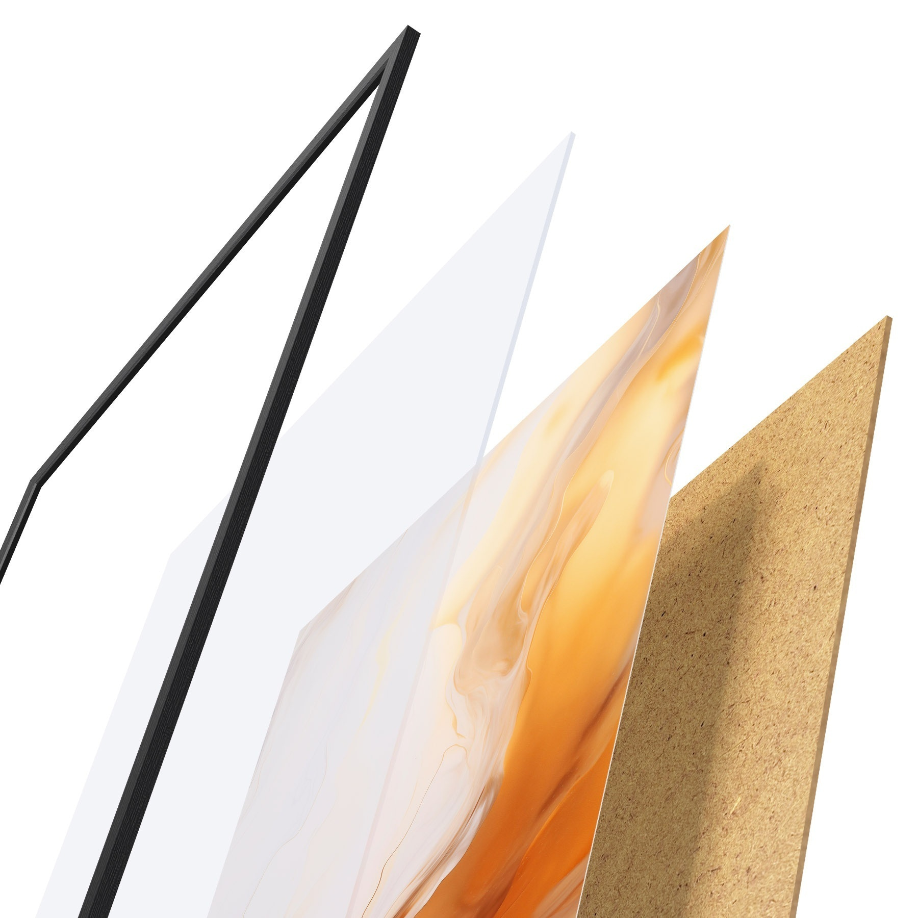 Plakāts sastāv no rāmja, pleksstikla, iespiestā attēla un skaidu plātnes pamatnes. Plakātu var uzreiz piekarināt pie sienas, pateicoties aizmugurē esošajiem stiprinājumiem.