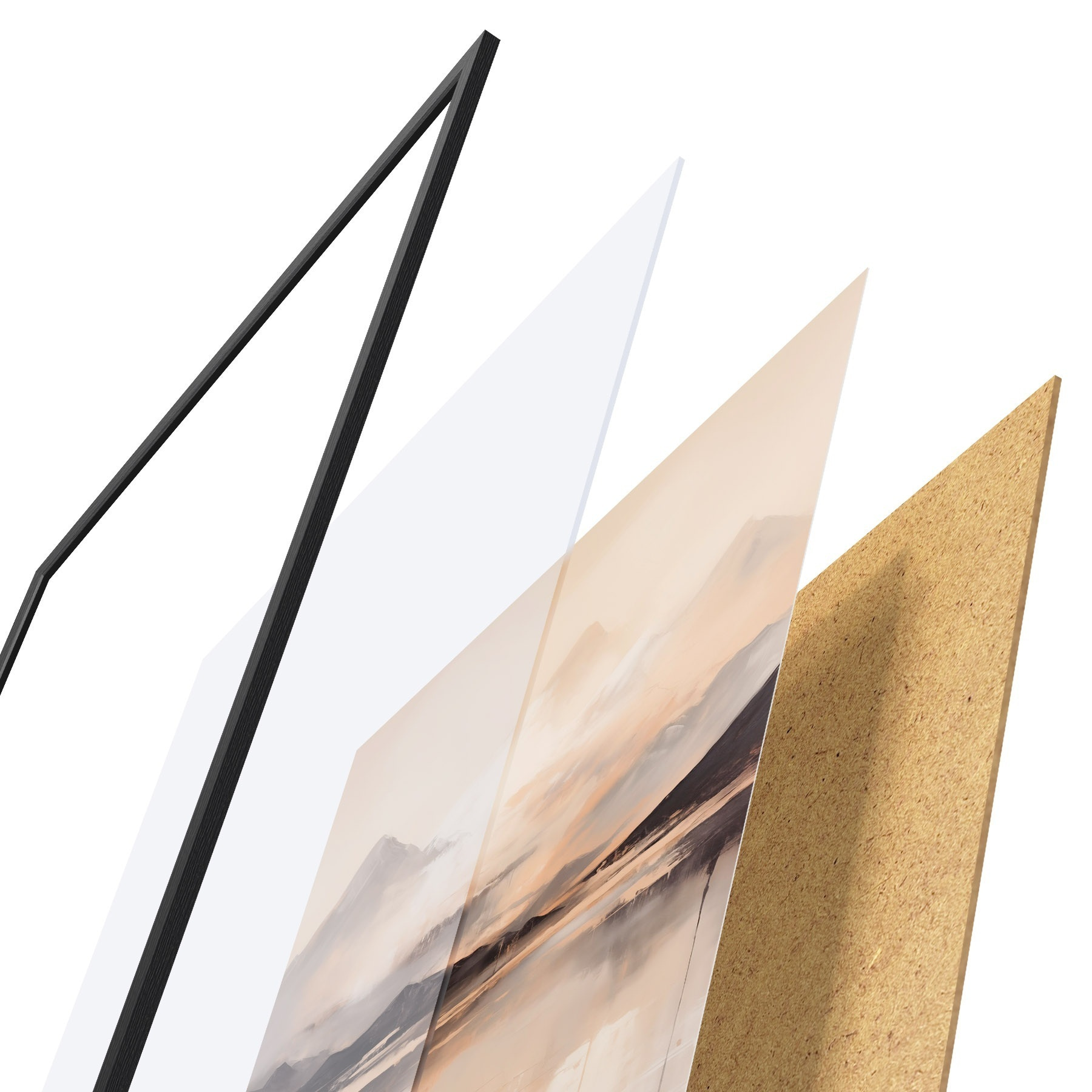 Plakāts sastāv no rāmja, pleksstikla, iespiestā attēla un skaidu plātnes pamatnes. Plakātu var uzreiz piekarināt pie sienas, pateicoties aizmugurē esošajiem stiprinājumiem.