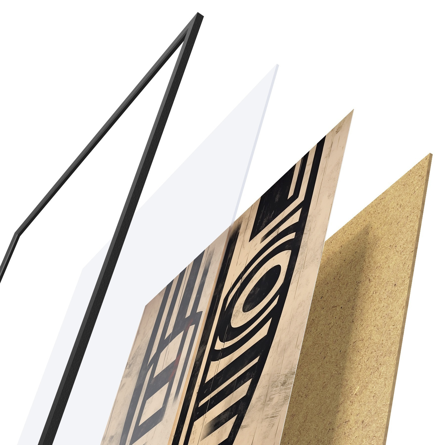 Plakāts sastāv no rāmja, pleksstikla, iespiestā attēla un skaidu plātnes pamatnes. Plakātu var uzreiz piekarināt pie sienas, pateicoties aizmugurē esošajiem stiprinājumiem.