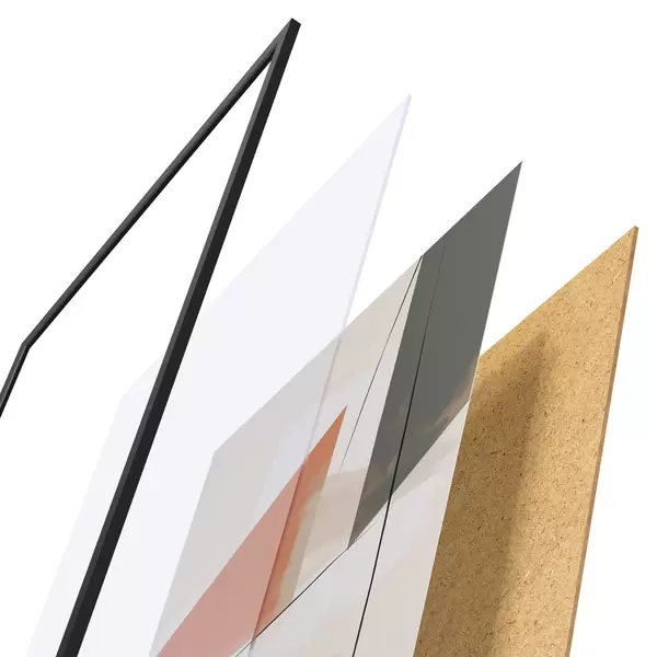 Plakāts sastāv no rāmja, pleksstikla, iespiestā attēla un skaidu plātnes pamatnes. Plakātu var uzreiz piekarināt pie sienas, pateicoties aizmugurē esošajiem stiprinājumiem.