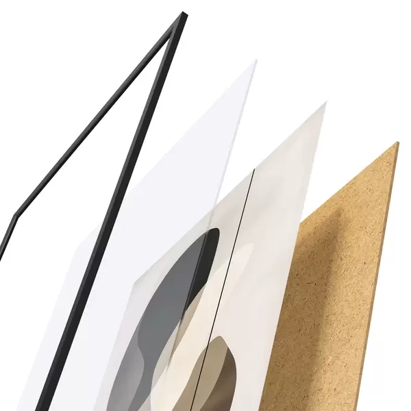 Plakāts sastāv no rāmja, pleksstikla, iespiestā attēla un skaidu plātnes pamatnes. Plakātu var uzreiz piekarināt pie sienas, pateicoties aizmugurē esošajiem stiprinājumiem.
