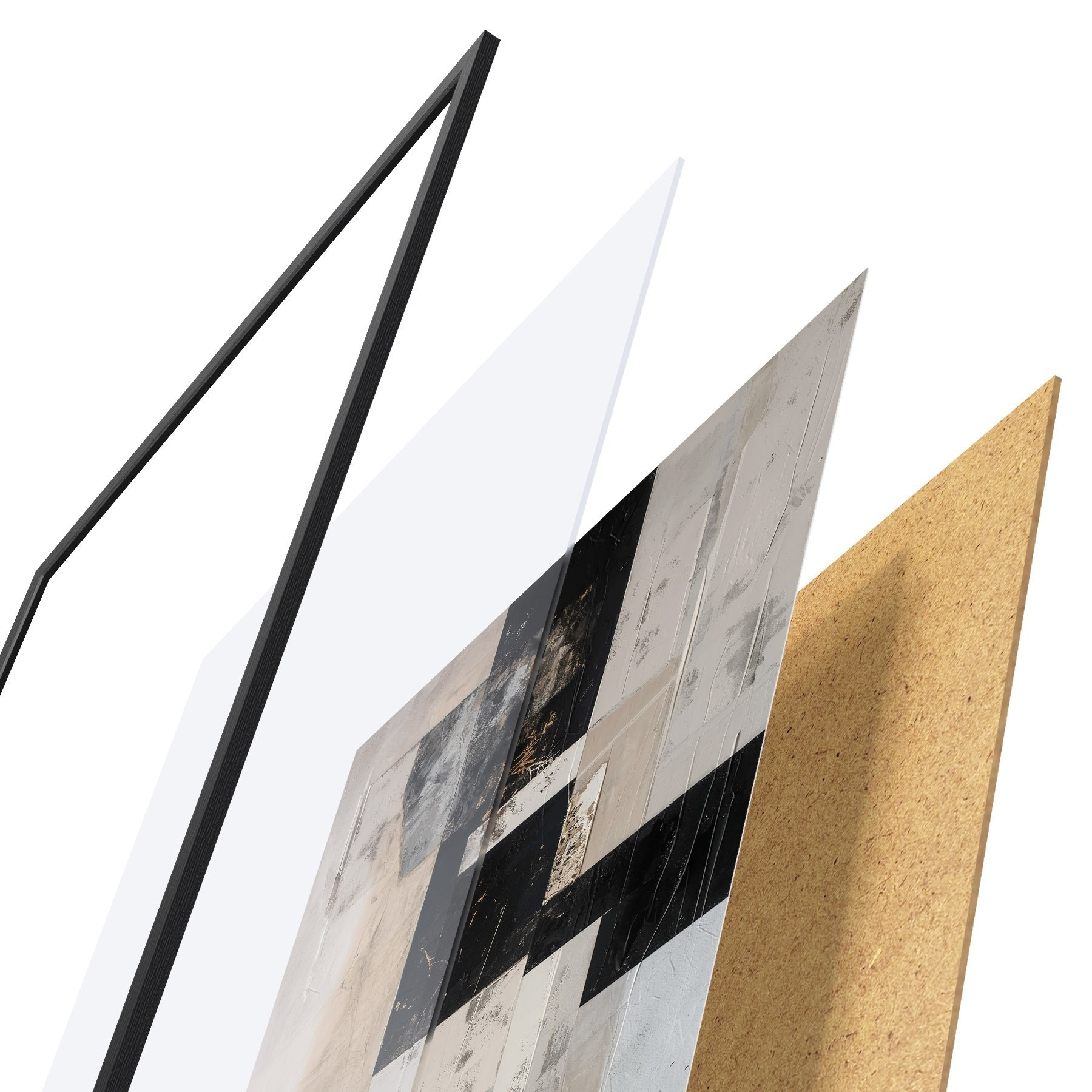 Plakāts sastāv no rāmja, pleksstikla, iespiestā attēla un skaidu plātnes pamatnes. Plakātu var uzreiz piekarināt pie sienas, pateicoties aizmugurē esošajiem stiprinājumiem.