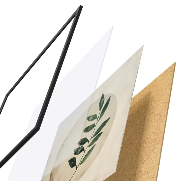 Plakāts sastāv no rāmja, pleksstikla, iespiestā attēla un skaidu plātnes pamatnes. Plakātu var uzreiz piekarināt pie sienas, pateicoties aizmugurē esošajiem stiprinājumiem.