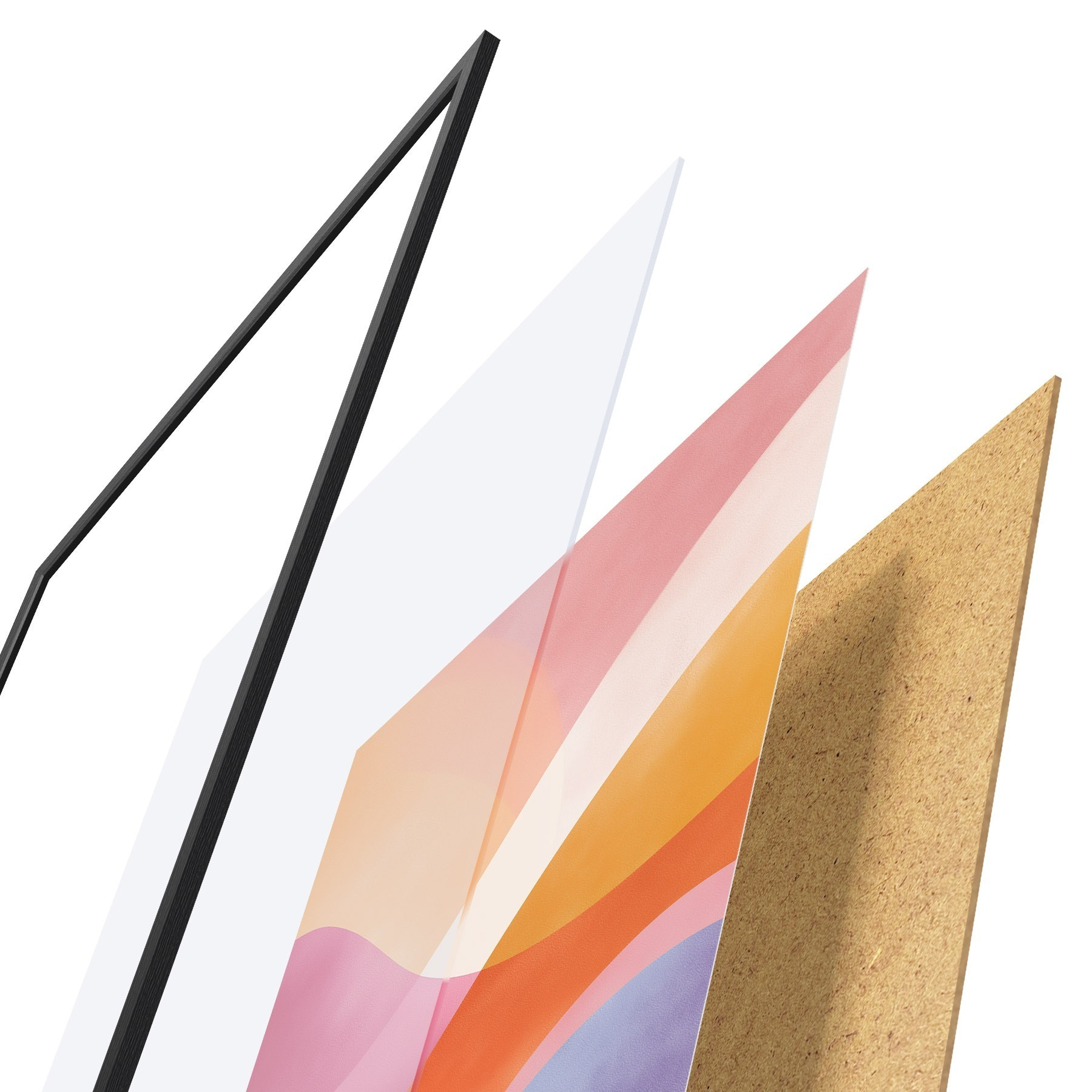 Plakāts sastāv no rāmja, pleksstikla, iespiestā attēla un skaidu plātnes pamatnes. Plakātu var uzreiz piekarināt pie sienas, pateicoties aizmugurē esošajiem stiprinājumiem.