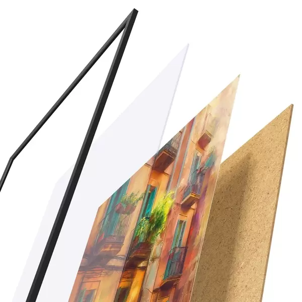 Plakāts sastāv no rāmja, pleksstikla, iespiestā attēla un skaidu plātnes pamatnes. Plakātu var uzreiz piekarināt pie sienas, pateicoties aizmugurē esošajiem stiprinājumiem.