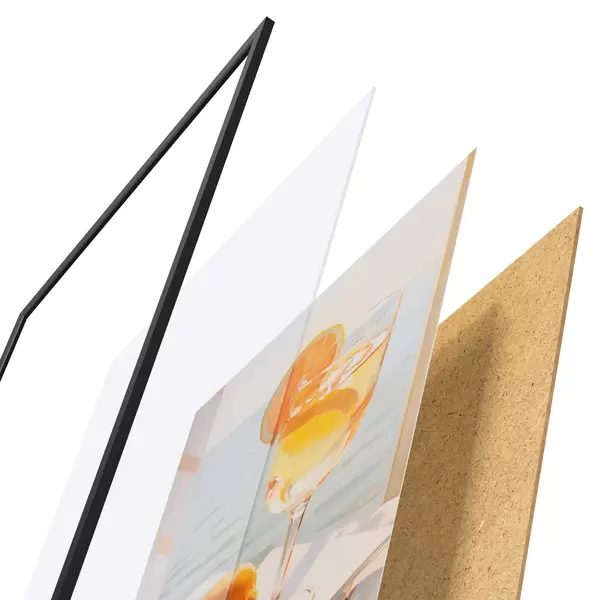Plakāts sastāv no rāmja, pleksstikla, iespiestā attēla un skaidu plātnes pamatnes. Plakātu var uzreiz piekarināt pie sienas, pateicoties aizmugurē esošajiem stiprinājumiem.
