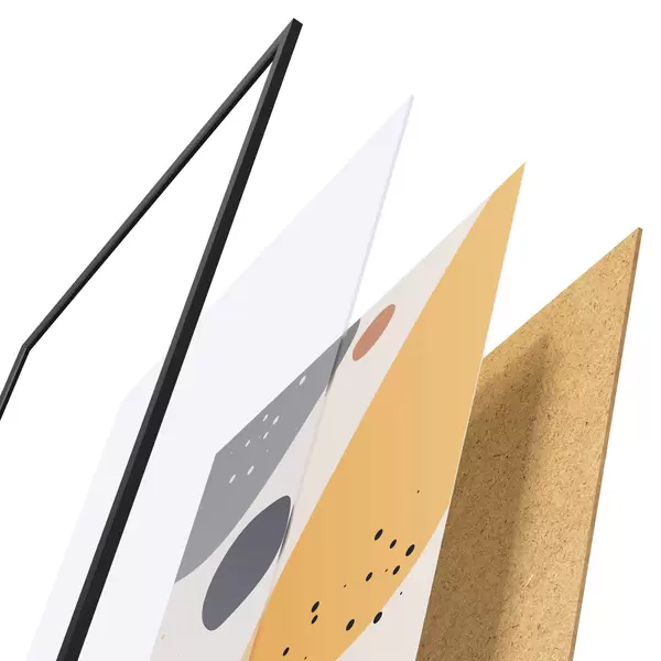 Plakāts sastāv no rāmja, pleksstikla, iespiestā attēla un skaidu plātnes pamatnes. Plakātu var uzreiz piekarināt pie sienas, pateicoties aizmugurē esošajiem stiprinājumiem.