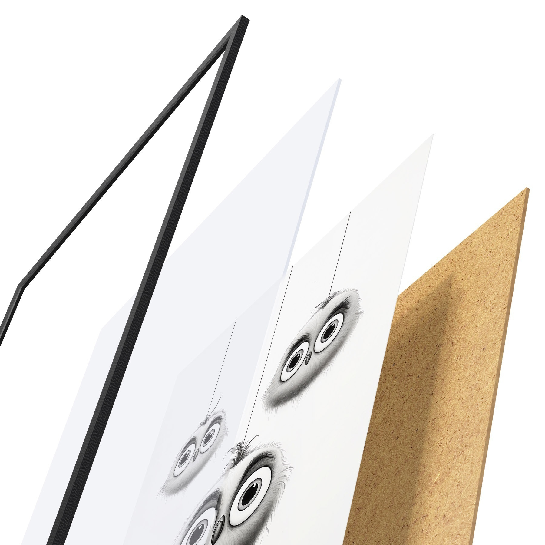 Plakāts sastāv no rāmja, pleksstikla, iespiestā attēla un skaidu plātnes pamatnes. Plakātu var uzreiz piekarināt pie sienas, pateicoties aizmugurē esošajiem stiprinājumiem.
