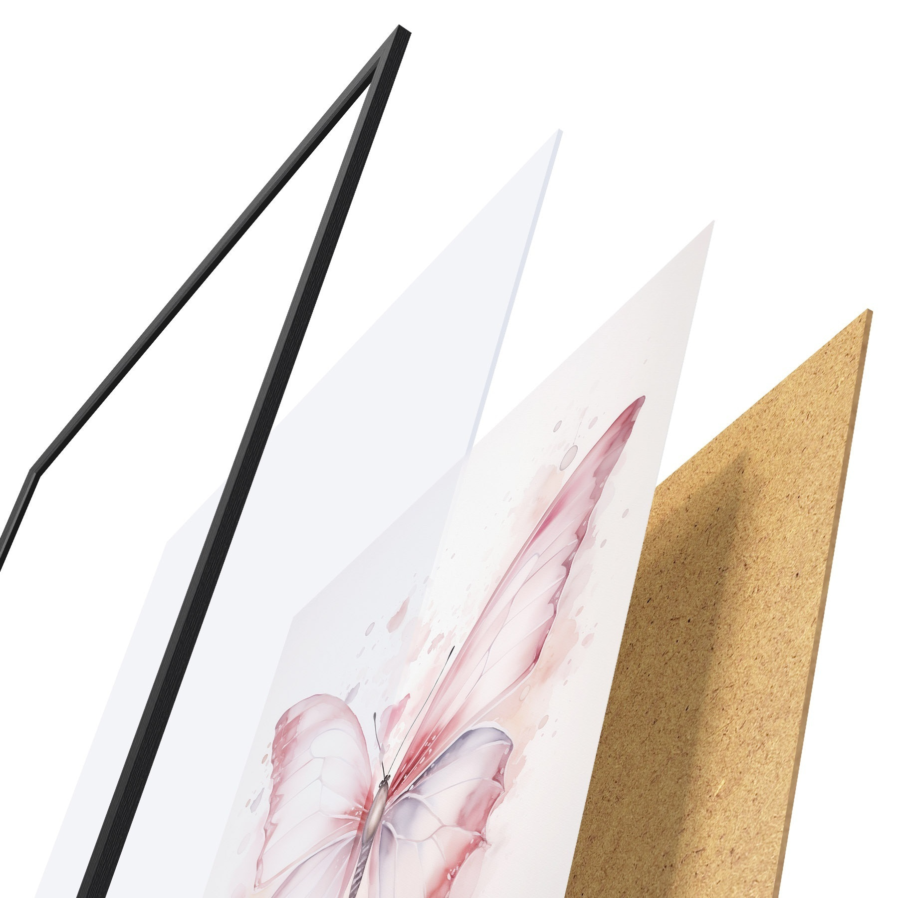 Plakāts sastāv no rāmja, pleksstikla, iespiestā attēla un skaidu plātnes pamatnes. Plakātu var uzreiz piekarināt pie sienas, pateicoties aizmugurē esošajiem stiprinājumiem.