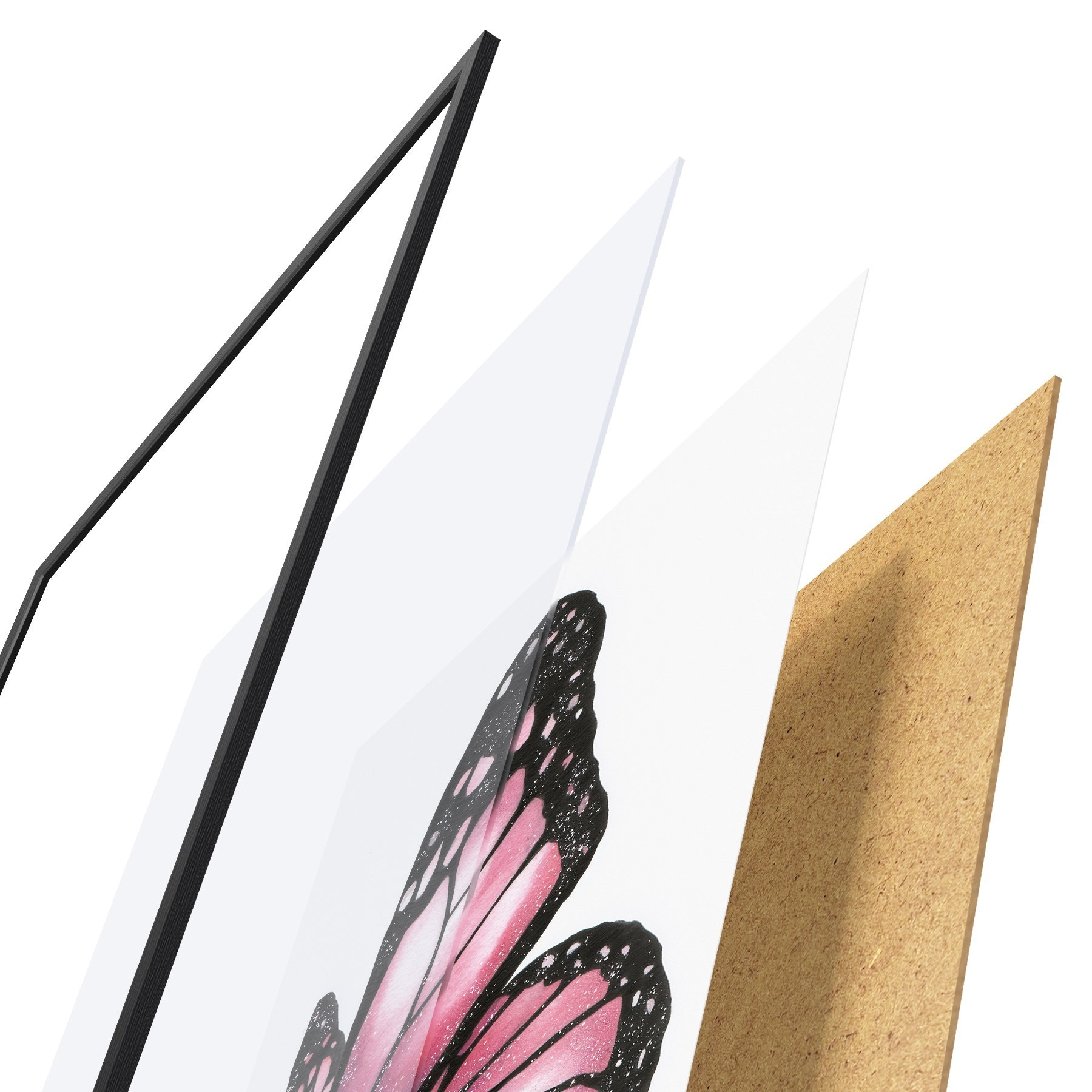 Plakāts sastāv no rāmja, pleksstikla, iespiestā attēla un skaidu plātnes pamatnes. Plakātu var uzreiz piekarināt pie sienas, pateicoties aizmugurē esošajiem stiprinājumiem.
