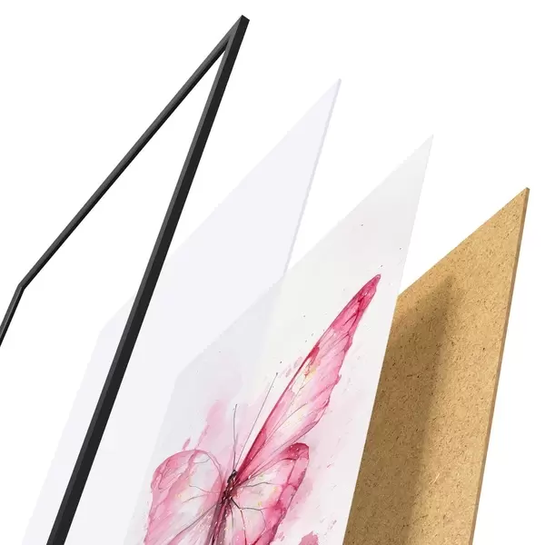 Plakāts sastāv no rāmja, pleksstikla, iespiestā attēla un skaidu plātnes pamatnes. Plakātu var uzreiz piekarināt pie sienas, pateicoties aizmugurē esošajiem stiprinājumiem.