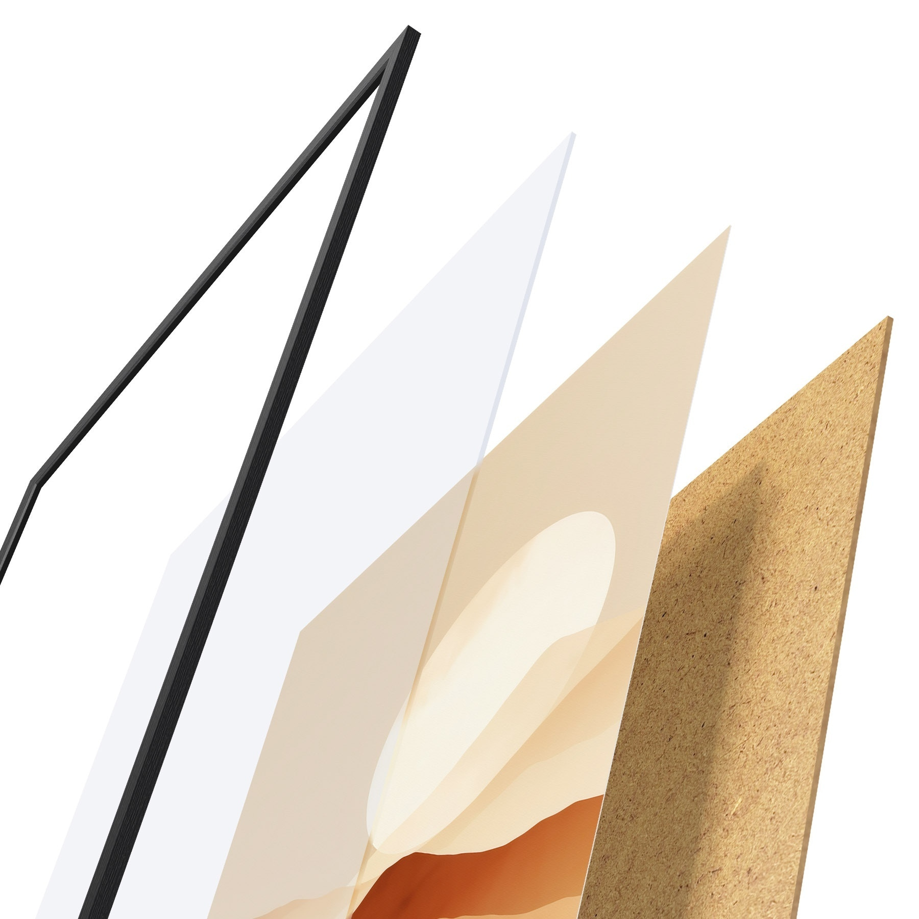 Plakāts sastāv no rāmja, pleksstikla, iespiestā attēla un skaidu plātnes pamatnes. Plakātu var uzreiz piekarināt pie sienas, pateicoties aizmugurē esošajiem stiprinājumiem.