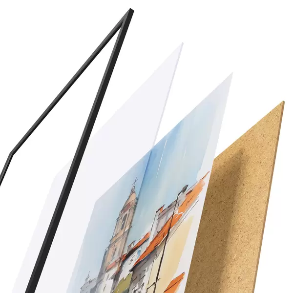 Plakāts sastāv no rāmja, pleksstikla, iespiestā attēla un skaidu plātnes pamatnes. Plakātu var uzreiz piekarināt pie sienas, pateicoties aizmugurē esošajiem stiprinājumiem.