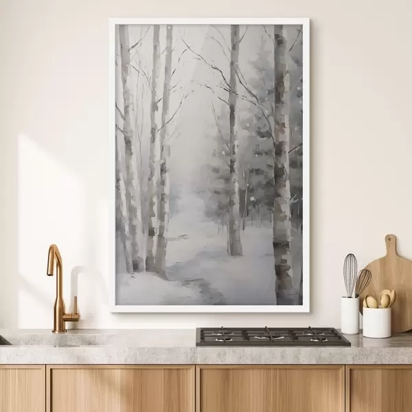 Plakāts Bērzu koki ziemas mežā Nr f46129