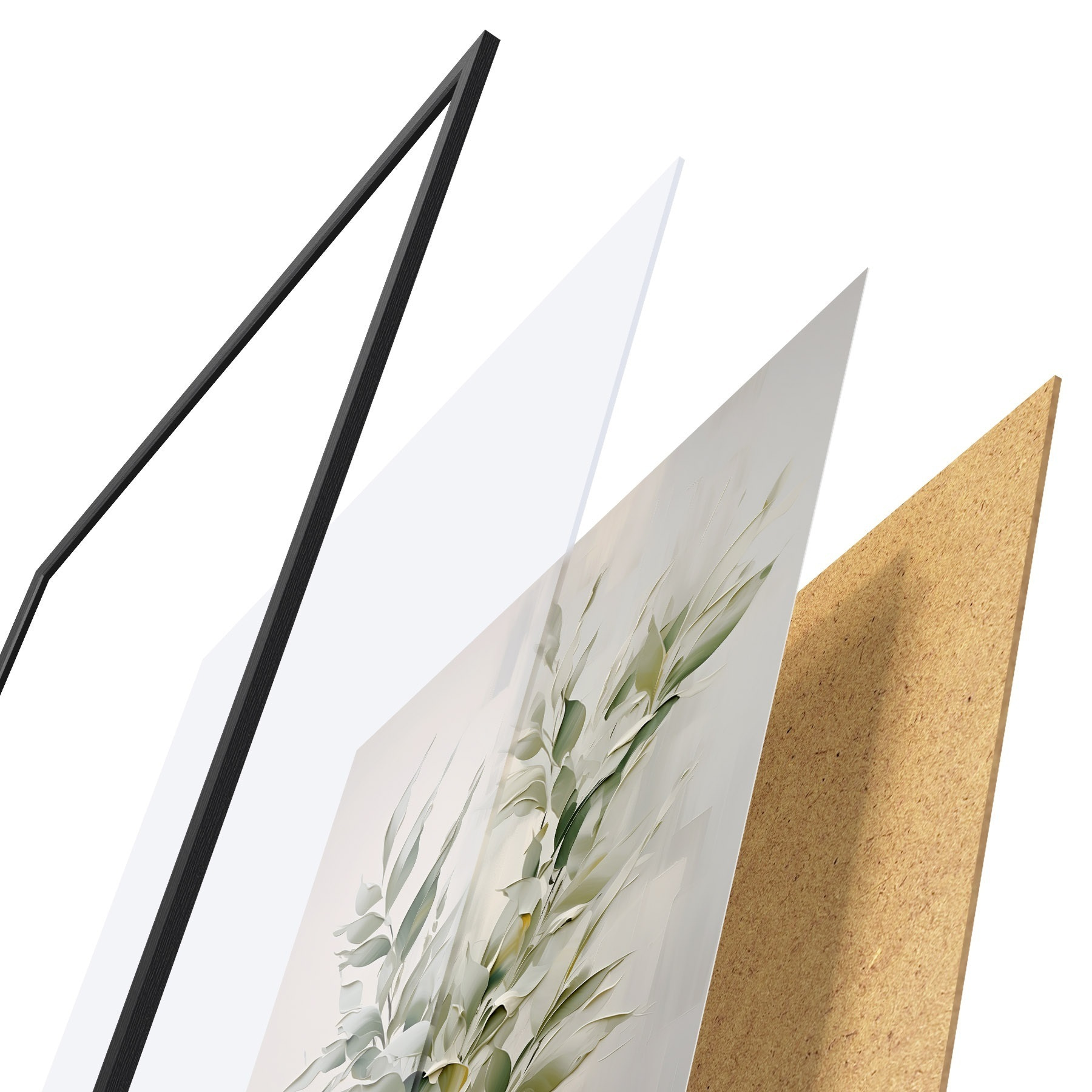 Plakāts sastāv no rāmja, pleksstikla, iespiestā attēla un skaidu plātnes pamatnes. Plakātu var uzreiz piekarināt pie sienas, pateicoties aizmugurē esošajiem stiprinājumiem.