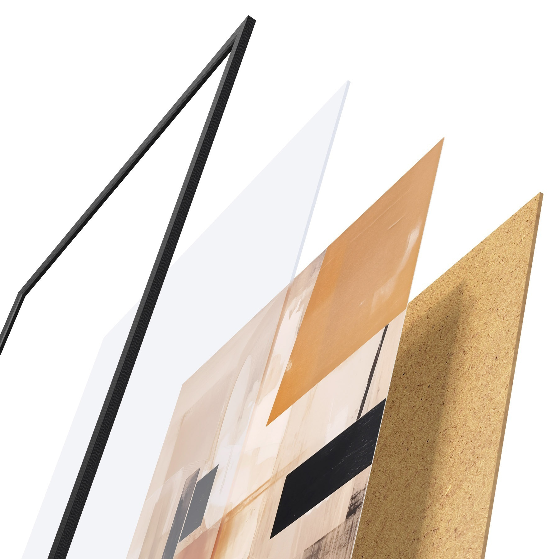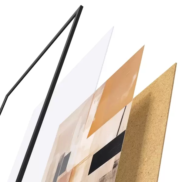 Plakāts sastāv no rāmja, pleksstikla, iespiestā attēla un skaidu plātnes pamatnes. Plakātu var uzreiz piekarināt pie sienas, pateicoties aizmugurē esošajiem stiprinājumiem.