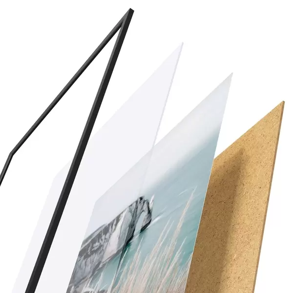 Plakāts sastāv no rāmja, pleksstikla, iespiestā attēla un skaidu plātnes pamatnes. Plakātu var uzreiz piekarināt pie sienas, pateicoties aizmugurē esošajiem stiprinājumiem.