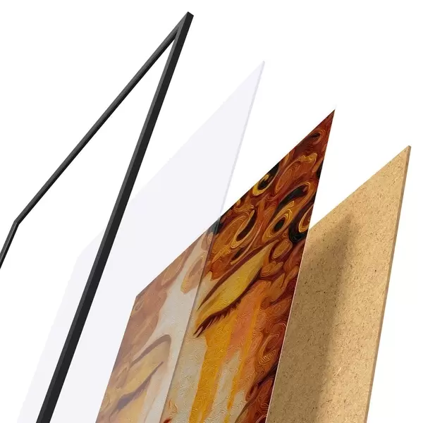Plakāts sastāv no rāmja, pleksstikla, iespiestā attēla un skaidu plātnes pamatnes. Plakātu var uzreiz piekarināt pie sienas, pateicoties aizmugurē esošajiem stiprinājumiem.