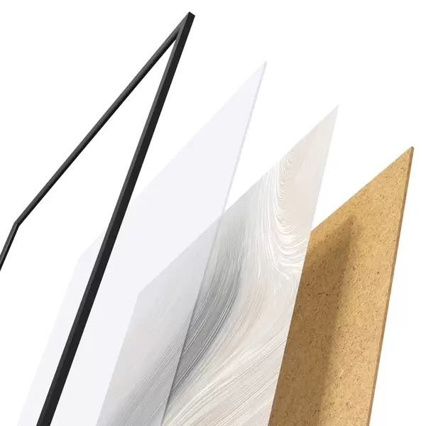 Plakāts sastāv no rāmja, pleksstikla, iespiestā attēla un skaidu plātnes pamatnes. Plakātu var uzreiz piekarināt pie sienas, pateicoties aizmugurē esošajiem stiprinājumiem.