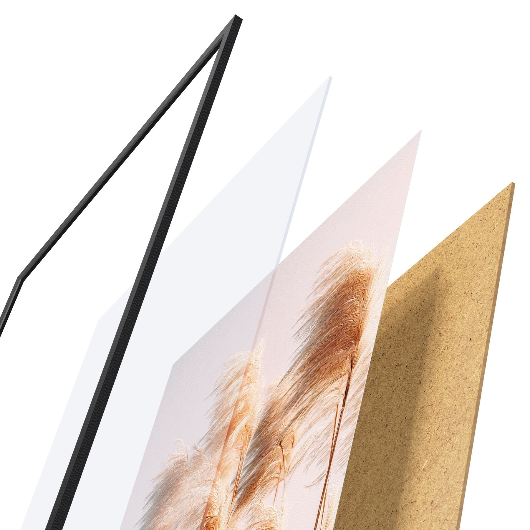 Plakāts sastāv no rāmja, pleksstikla, iespiestā attēla un skaidu plātnes pamatnes. Plakātu var uzreiz piekarināt pie sienas, pateicoties aizmugurē esošajiem stiprinājumiem.