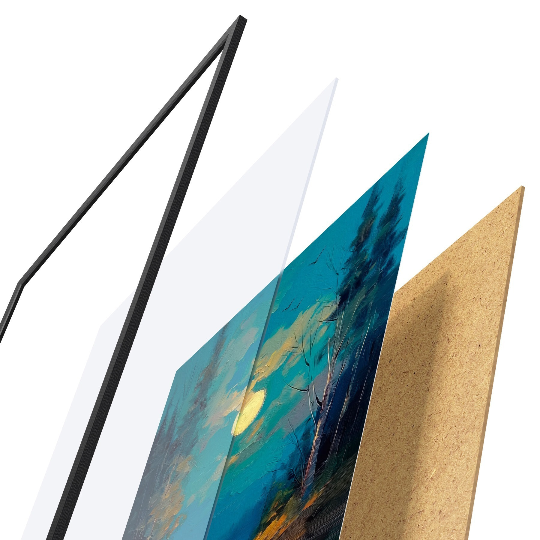 Plakāts sastāv no rāmja, pleksstikla, iespiestā attēla un skaidu plātnes pamatnes. Plakātu var uzreiz piekarināt pie sienas, pateicoties aizmugurē esošajiem stiprinājumiem.