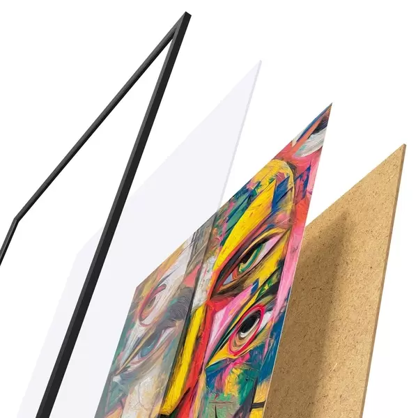 Plakāts sastāv no rāmja, pleksstikla, iespiestā attēla un skaidu plātnes pamatnes. Plakātu var uzreiz piekarināt pie sienas, pateicoties aizmugurē esošajiem stiprinājumiem.