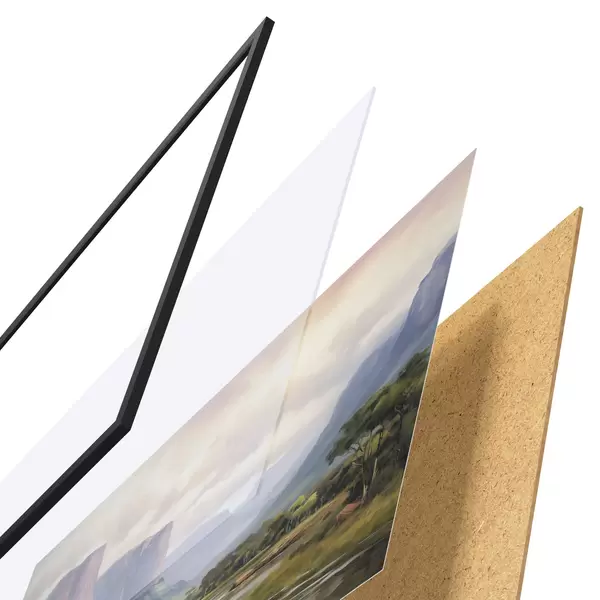 Plakāts sastāv no rāmja, pleksstikla, iespiestā attēla un skaidu plātnes pamatnes. Plakātu var uzreiz piekarināt pie sienas, pateicoties aizmugurē esošajiem stiprinājumiem.