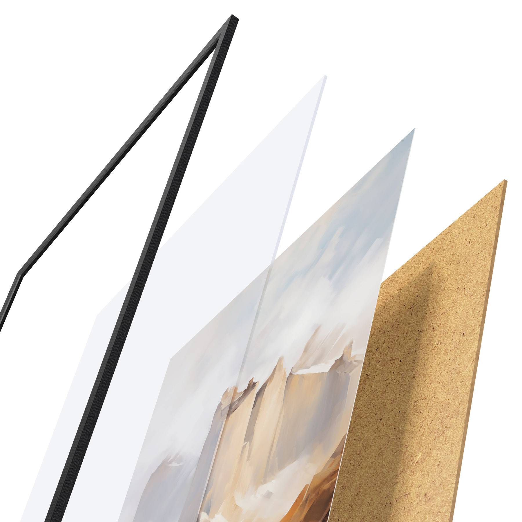Plakāts sastāv no rāmja, pleksstikla, iespiestā attēla un skaidu plātnes pamatnes. Plakātu var uzreiz piekarināt pie sienas, pateicoties aizmugurē esošajiem stiprinājumiem.