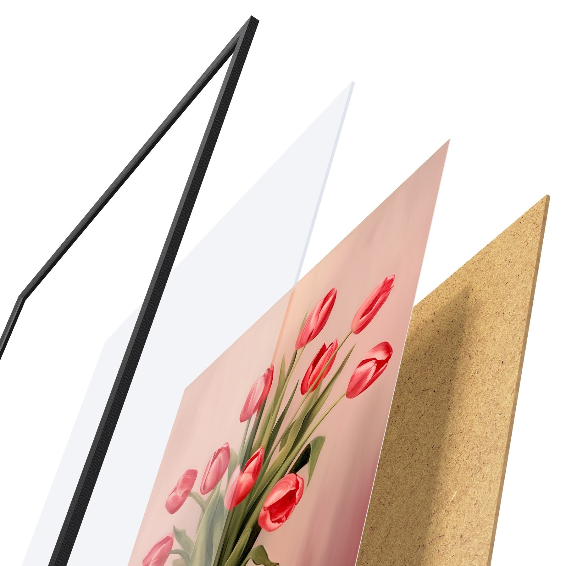 Plakāts sastāv no rāmja, pleksstikla, iespiestā attēla un skaidu plātnes pamatnes. Plakātu var uzreiz piekarināt pie sienas, pateicoties aizmugurē esošajiem stiprinājumiem.