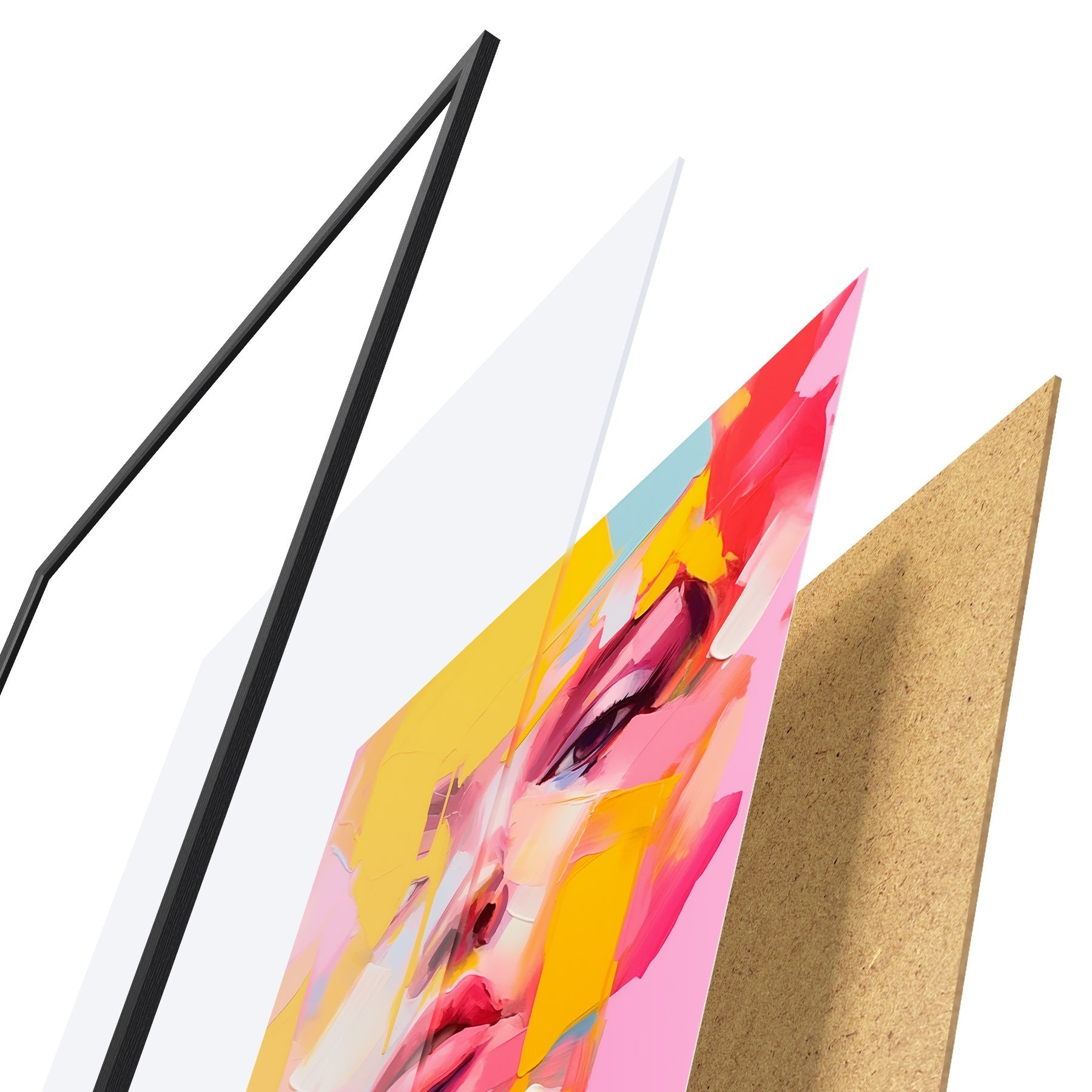 Plakāts sastāv no rāmja, pleksstikla, iespiestā attēla un skaidu plātnes pamatnes. Plakātu var uzreiz piekarināt pie sienas, pateicoties aizmugurē esošajiem stiprinājumiem.