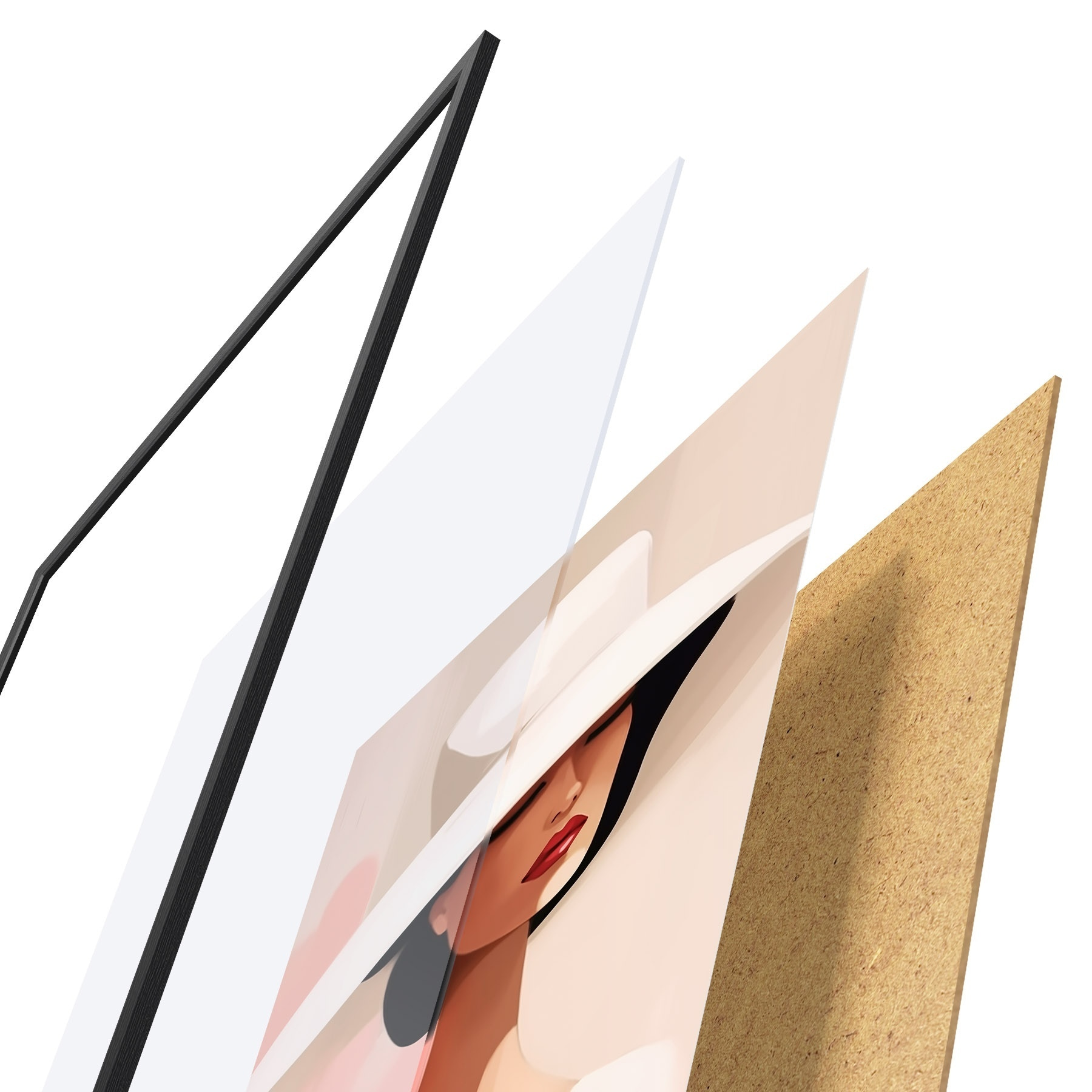 Plakāts sastāv no rāmja, pleksstikla, iespiestā attēla un skaidu plātnes pamatnes. Plakātu var uzreiz piekarināt pie sienas, pateicoties aizmugurē esošajiem stiprinājumiem.