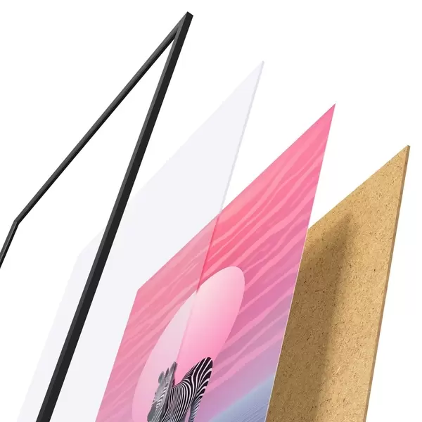 Plakāts sastāv no rāmja, pleksstikla, iespiestā attēla un skaidu plātnes pamatnes. Plakātu var uzreiz piekarināt pie sienas, pateicoties aizmugurē esošajiem stiprinājumiem.