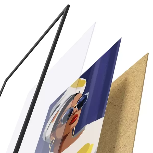 Plakāts sastāv no rāmja, pleksstikla, iespiestā attēla un skaidu plātnes pamatnes. Plakātu var uzreiz piekarināt pie sienas, pateicoties aizmugurē esošajiem stiprinājumiem.
