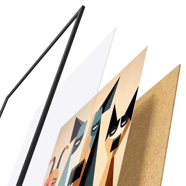 Plakāts sastāv no rāmja, pleksstikla, iespiestā attēla un skaidu plātnes pamatnes. Plakātu var uzreiz piekarināt pie sienas, pateicoties aizmugurē esošajiem stiprinājumiem.