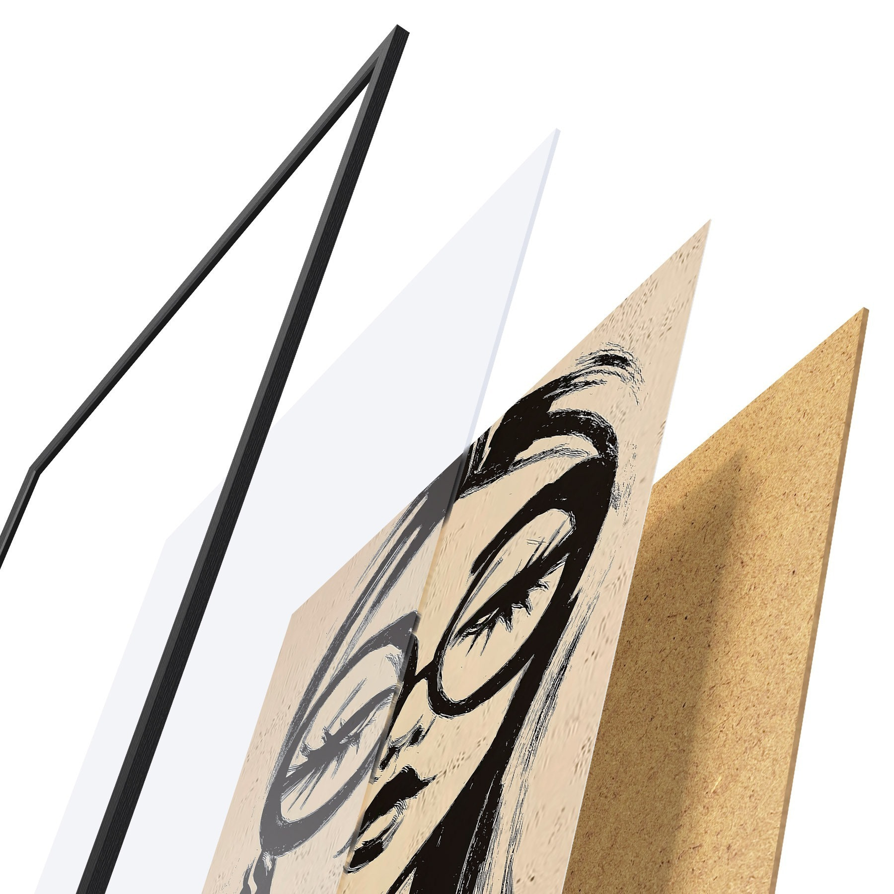 Plakāts sastāv no rāmja, pleksstikla, iespiestā attēla un skaidu plātnes pamatnes. Plakātu var uzreiz piekarināt pie sienas, pateicoties aizmugurē esošajiem stiprinājumiem.