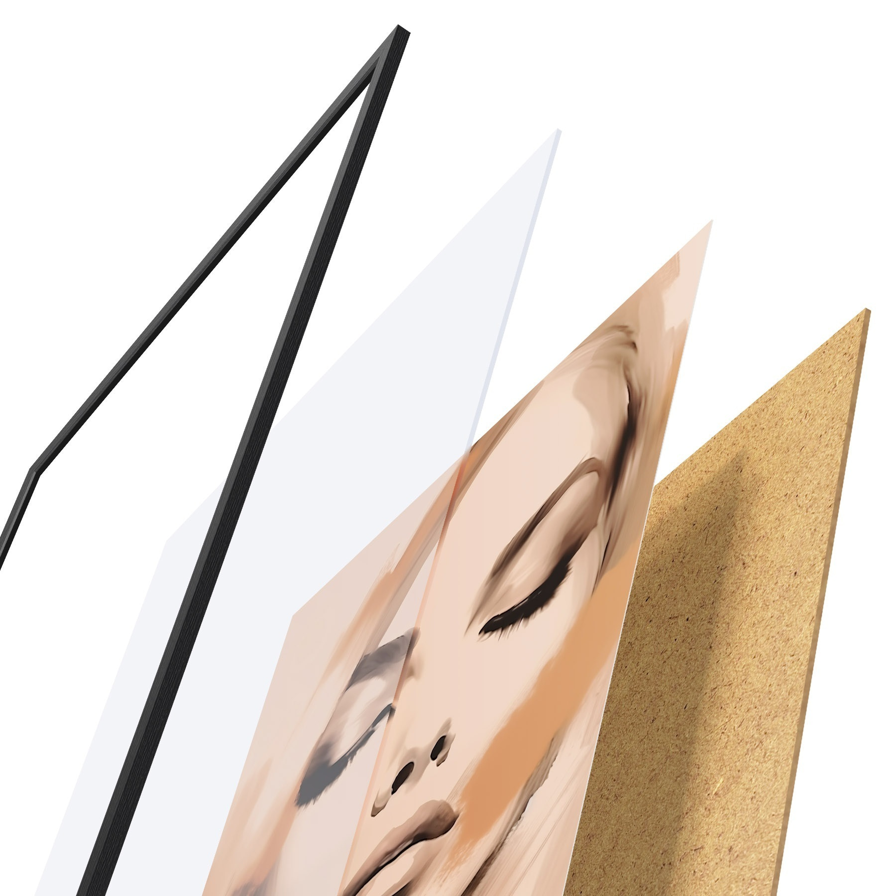 Plakāts sastāv no rāmja, pleksstikla, iespiestā attēla un skaidu plātnes pamatnes. Plakātu var uzreiz piekarināt pie sienas, pateicoties aizmugurē esošajiem stiprinājumiem.