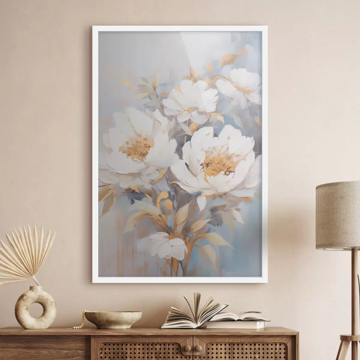 SākumlapaPlakātu katalogsPlakāti ziediPlakāts Baltas peonijas ar zilu centru un lapām, maigi otas triepieni, gaiši zils fons, ziedu kompozīcija Nr f46270