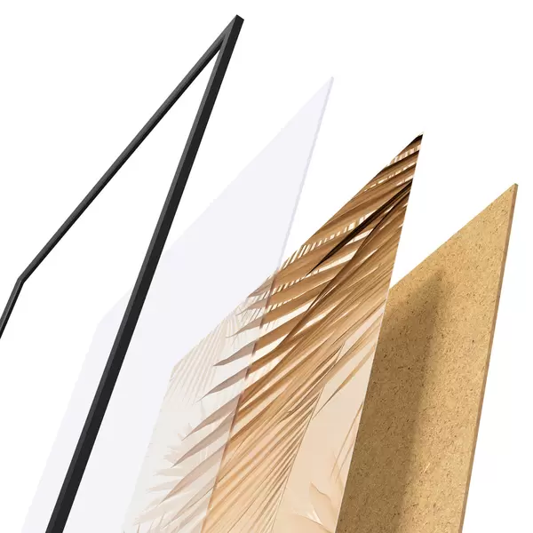 Plakāts sastāv no rāmja, pleksstikla, iespiestā attēla un skaidu plātnes pamatnes. Plakātu var uzreiz piekarināt pie sienas, pateicoties aizmugurē esošajiem stiprinājumiem.